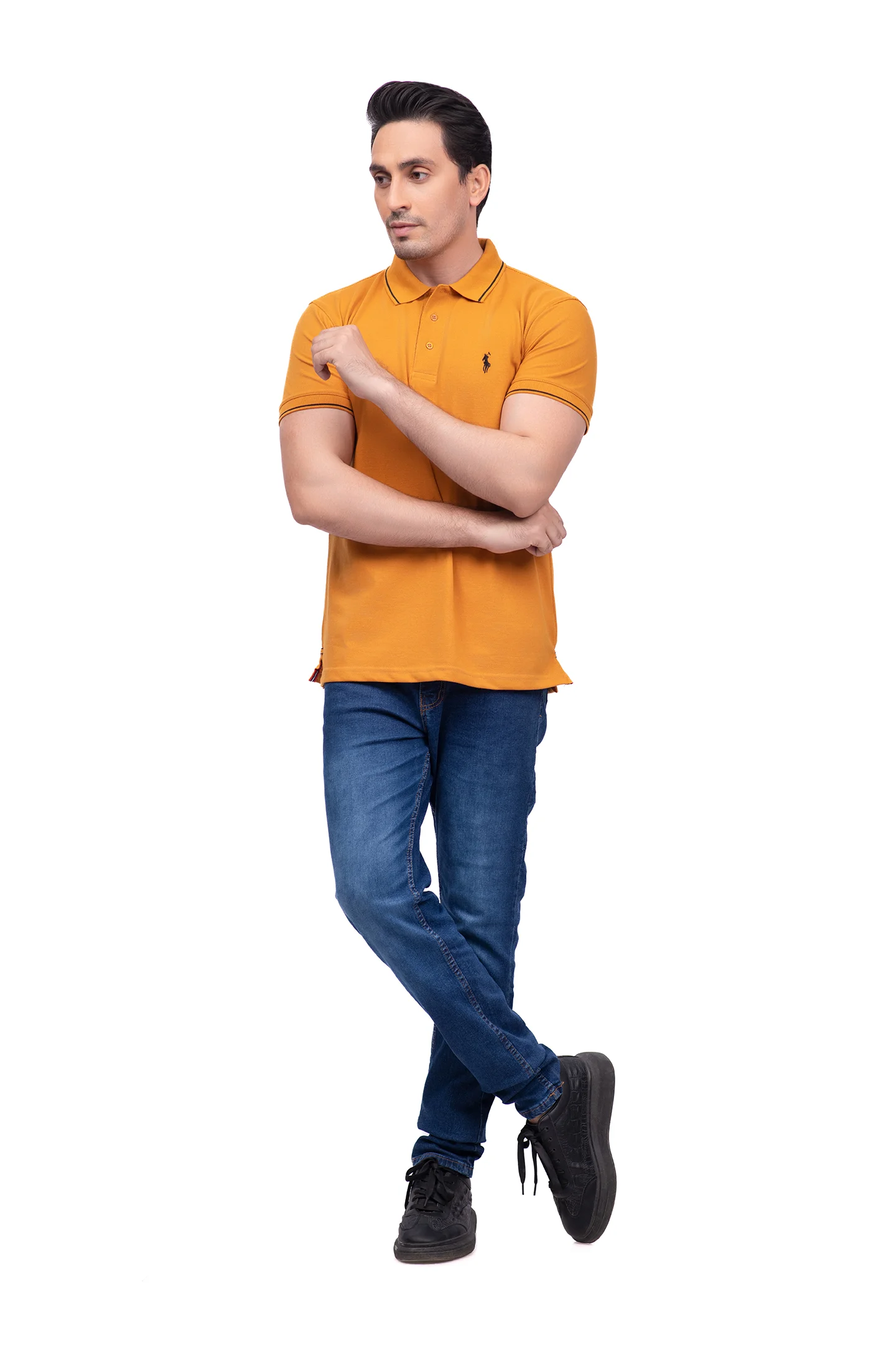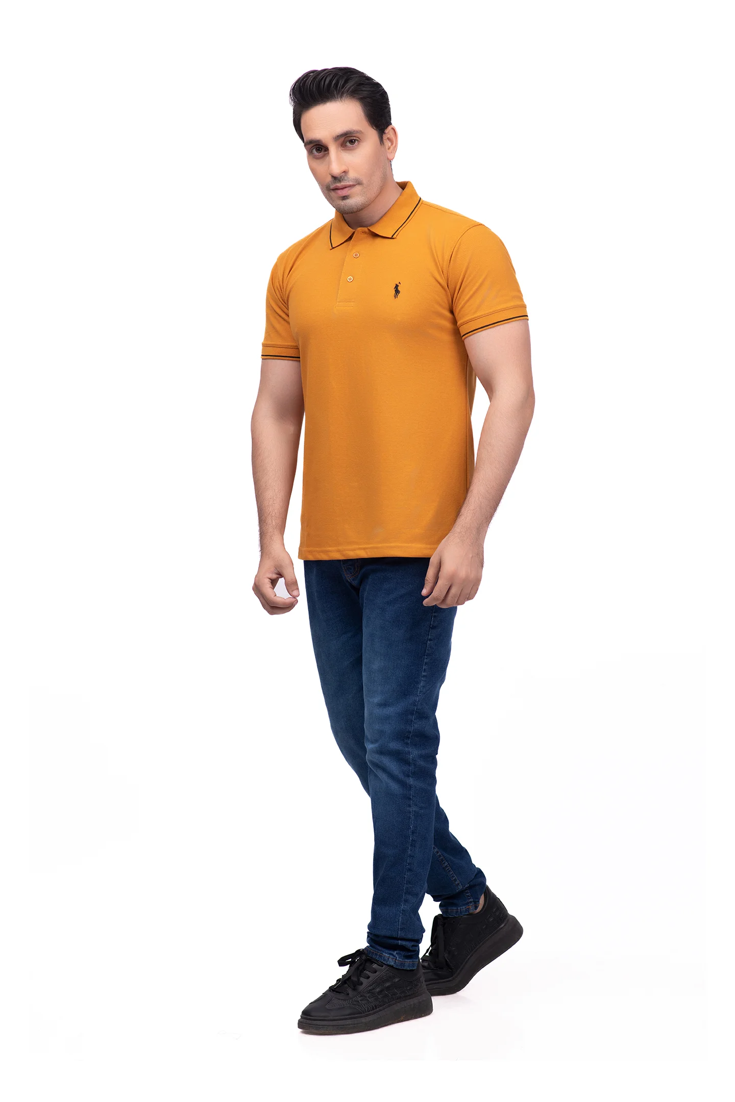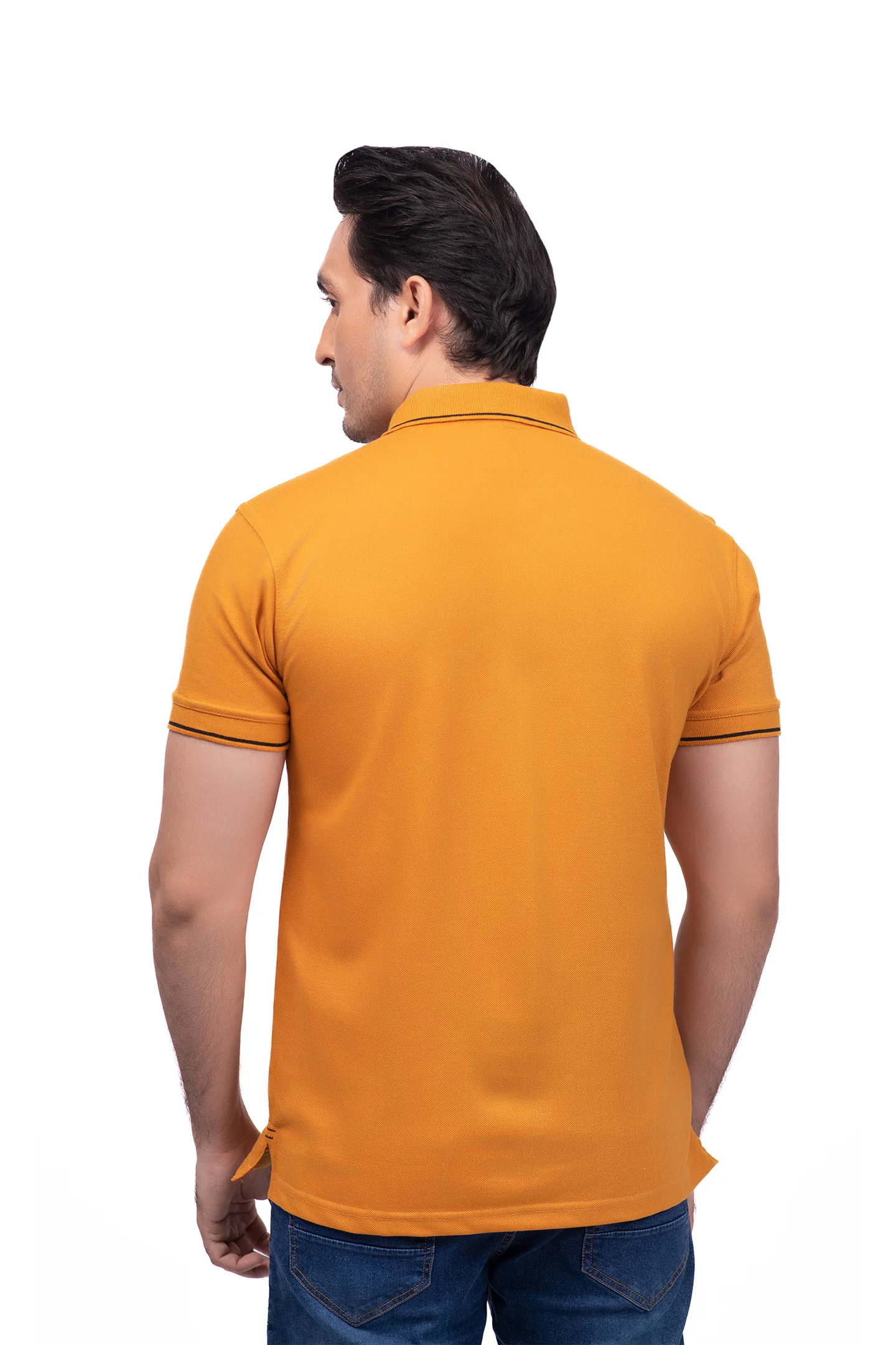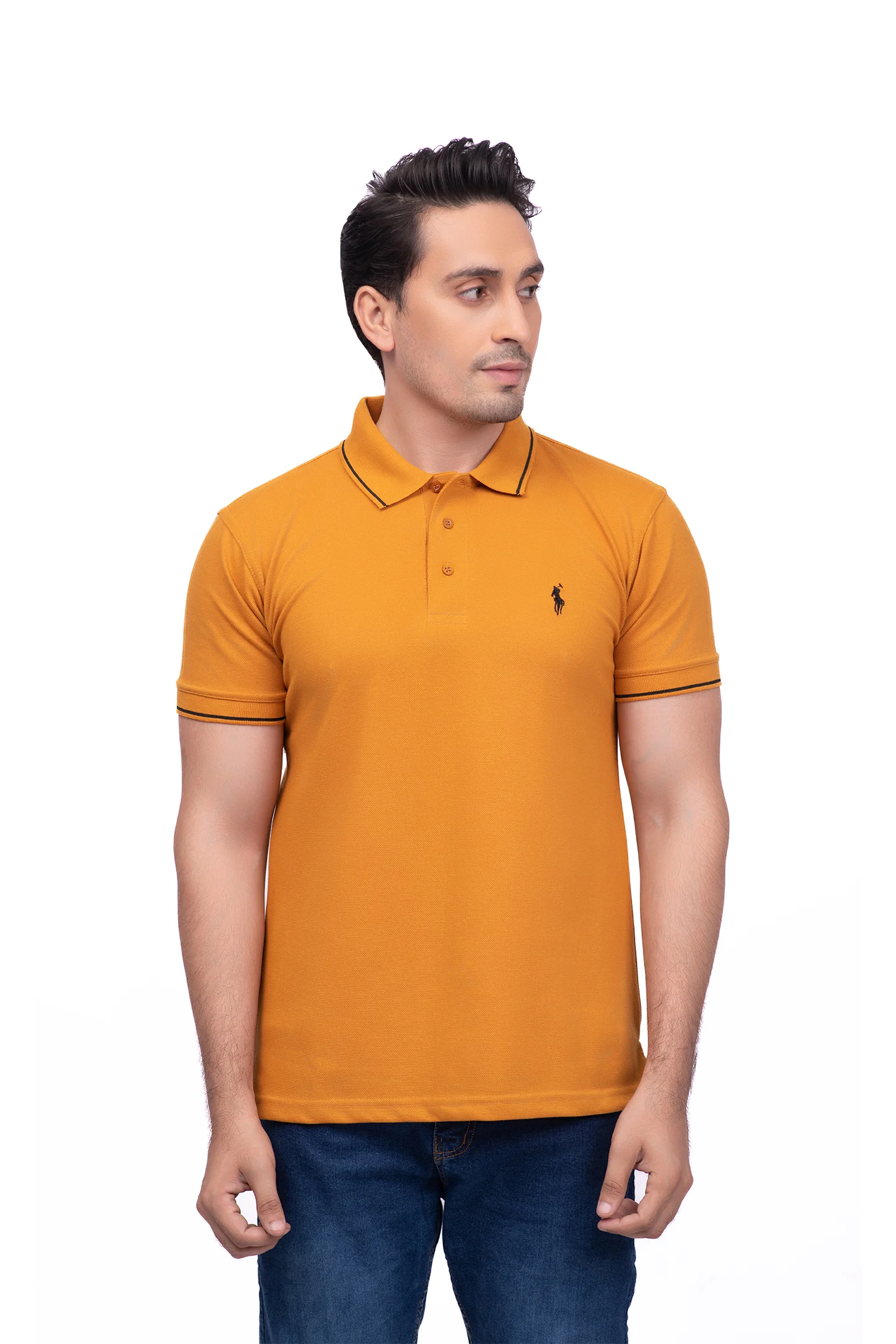 So, why settle for the ordinary? Grab this classic fit Plain Saffron Yellow Polo T Shirts Pakistan now and unchain your style in true swagger!”